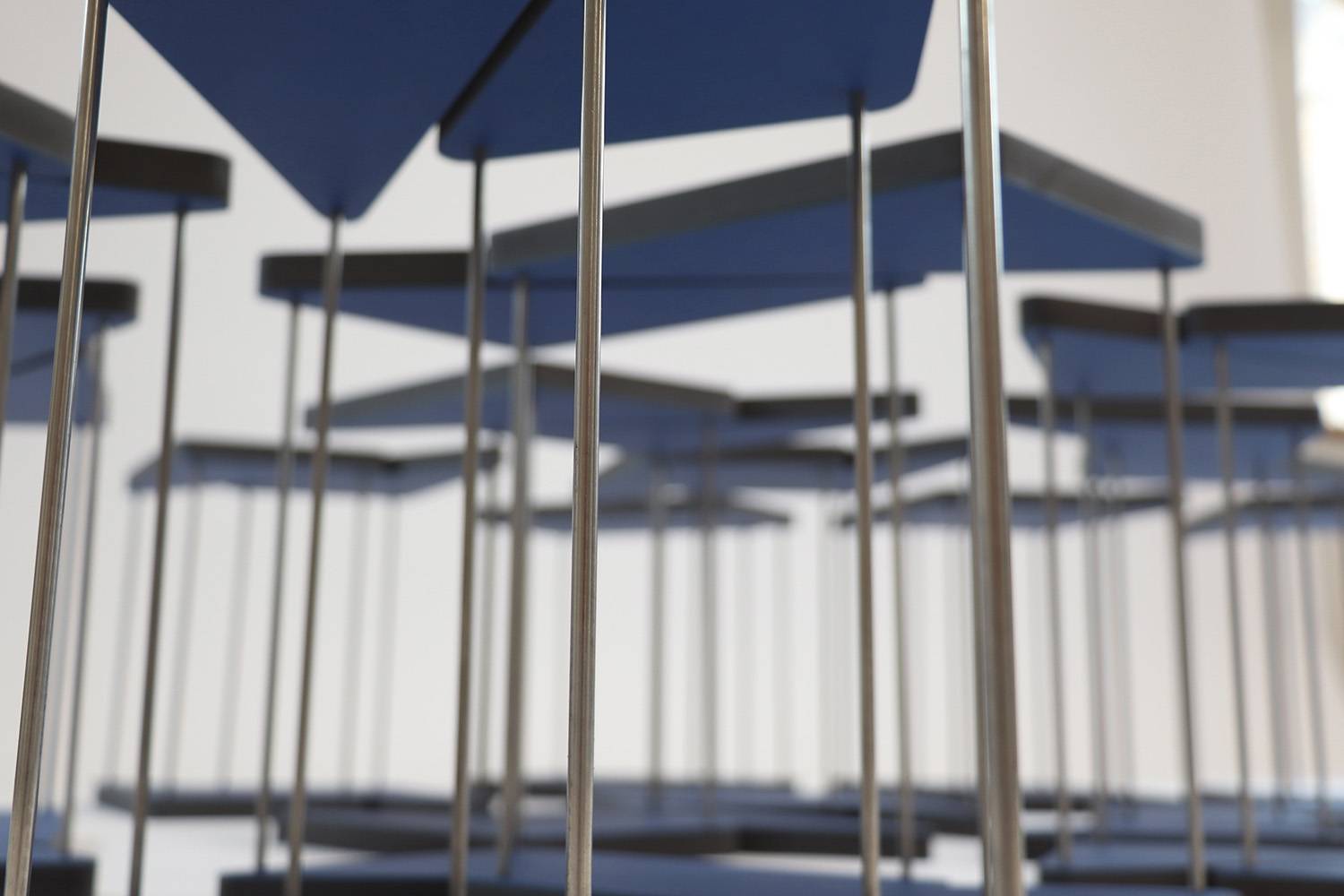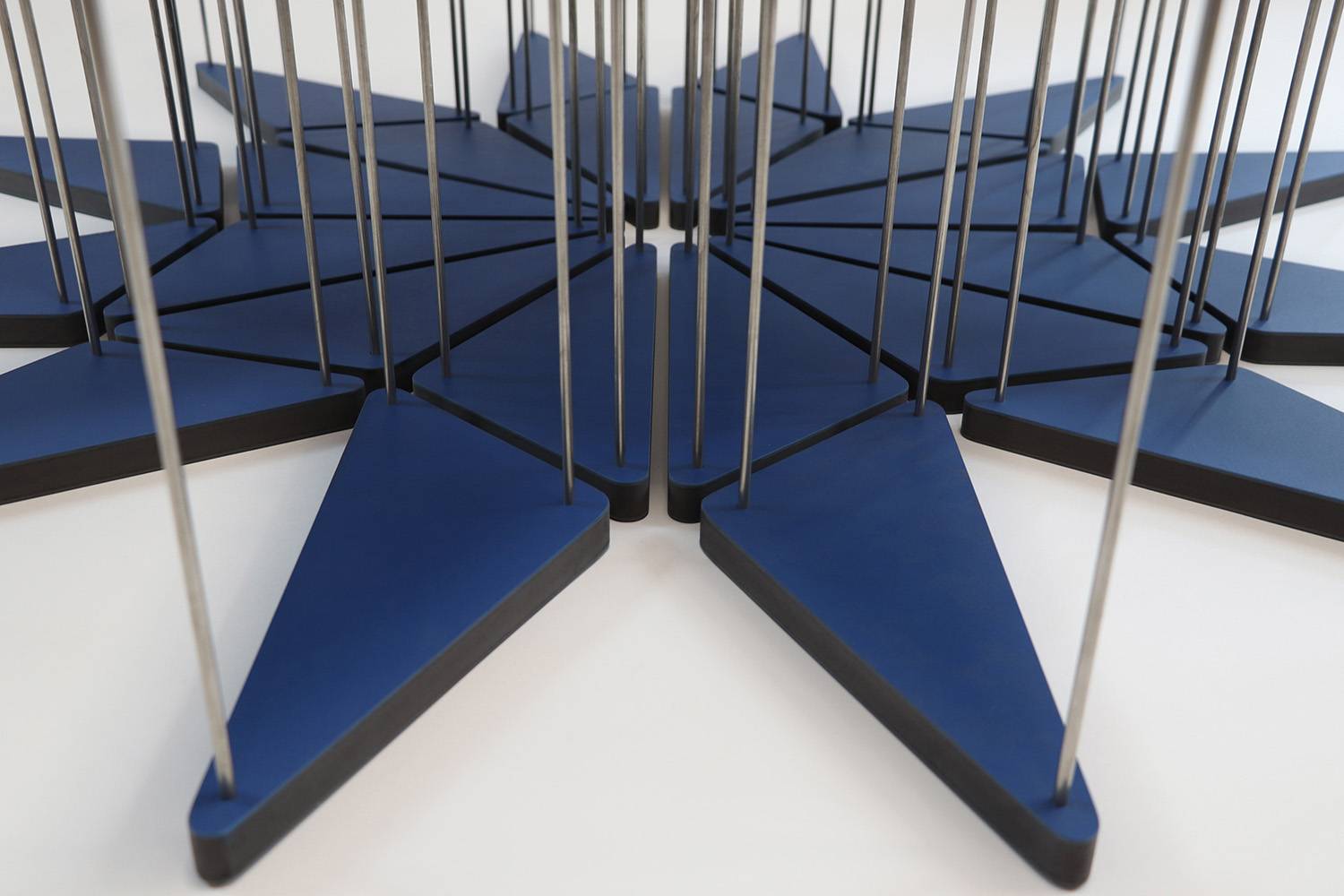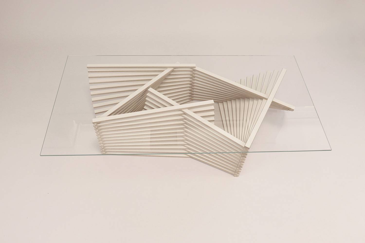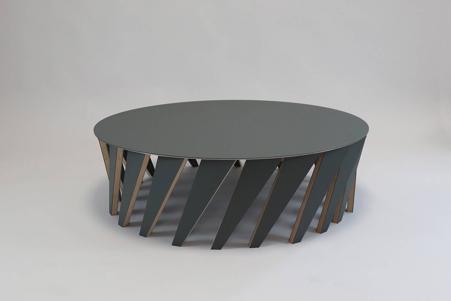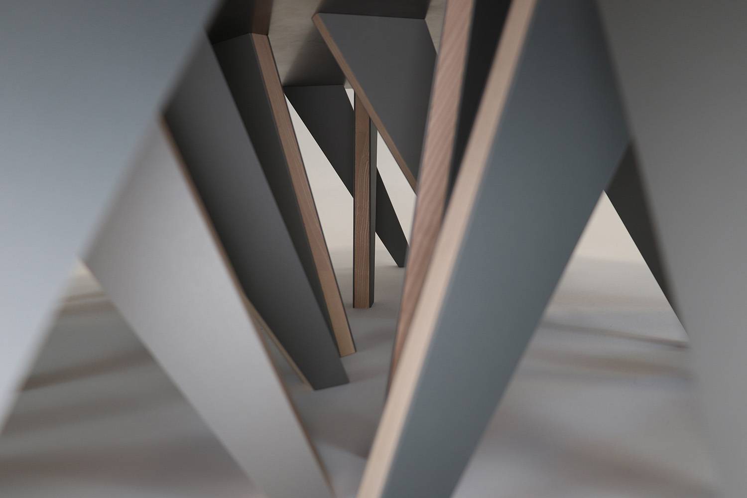 our favorite in the series. tabletop, table legs, carcass? all unnecessary. instead, this table is made of 40 vertical plates, each connected by a hinge. each plate can be rotated independently of the others. a thousand shapes are possible: from square to curved, even a circle. the highlight: elements can be added in any number. how long do you think the longest spine will be?