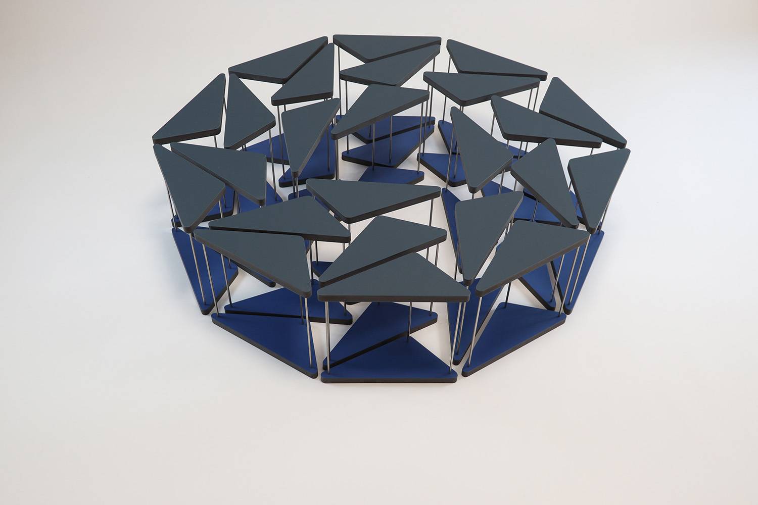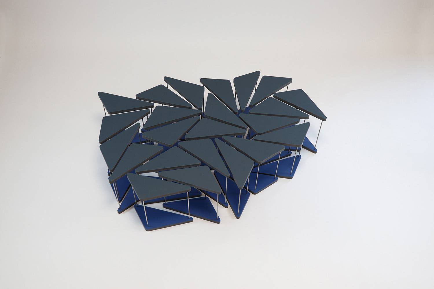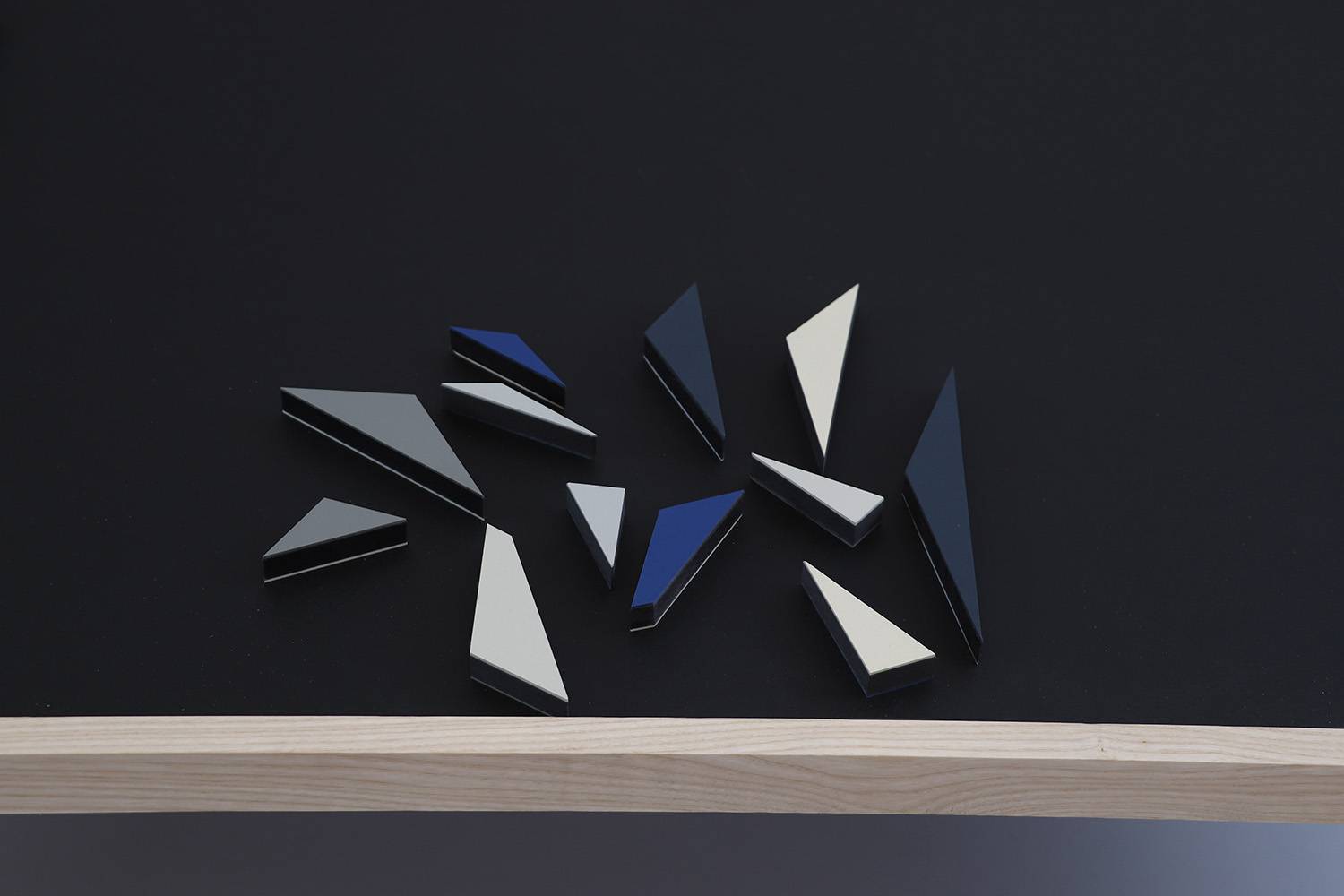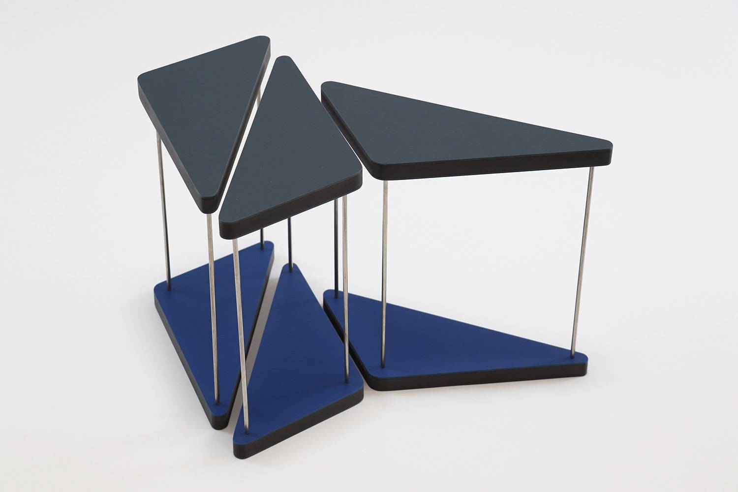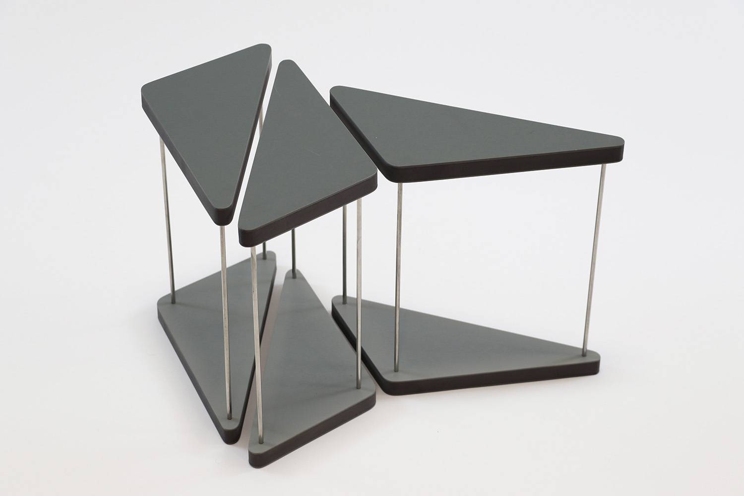 the triangle is a very good invention. our scalene triangles with 1 to 2 to 3 aspect ratios also look super harmonious in combination with the carefully thought-out curves. the thousand possible forms serve the whole spectrum: from floral to geometric. arranging, rearranging, finding patterns, filling gaps, using individual  elements of the 24 possible as side tables – it will be fun. even the twelfth time. since the base can be freely designed, the coffee table 1-2-triangle fits into any room.