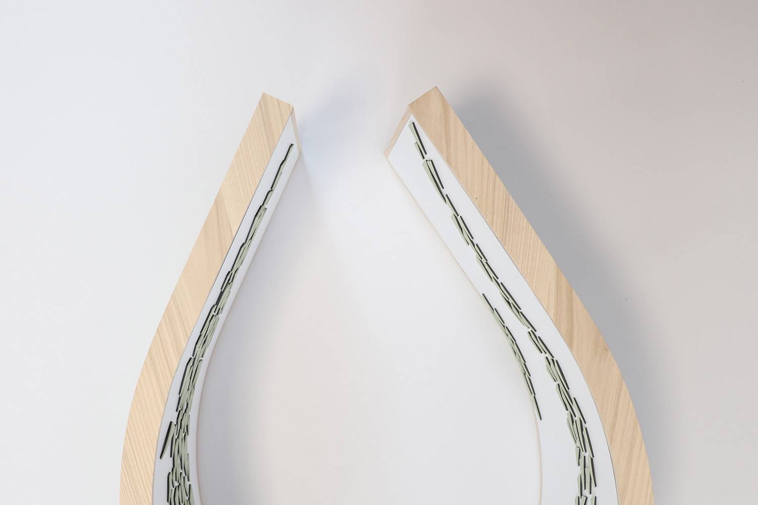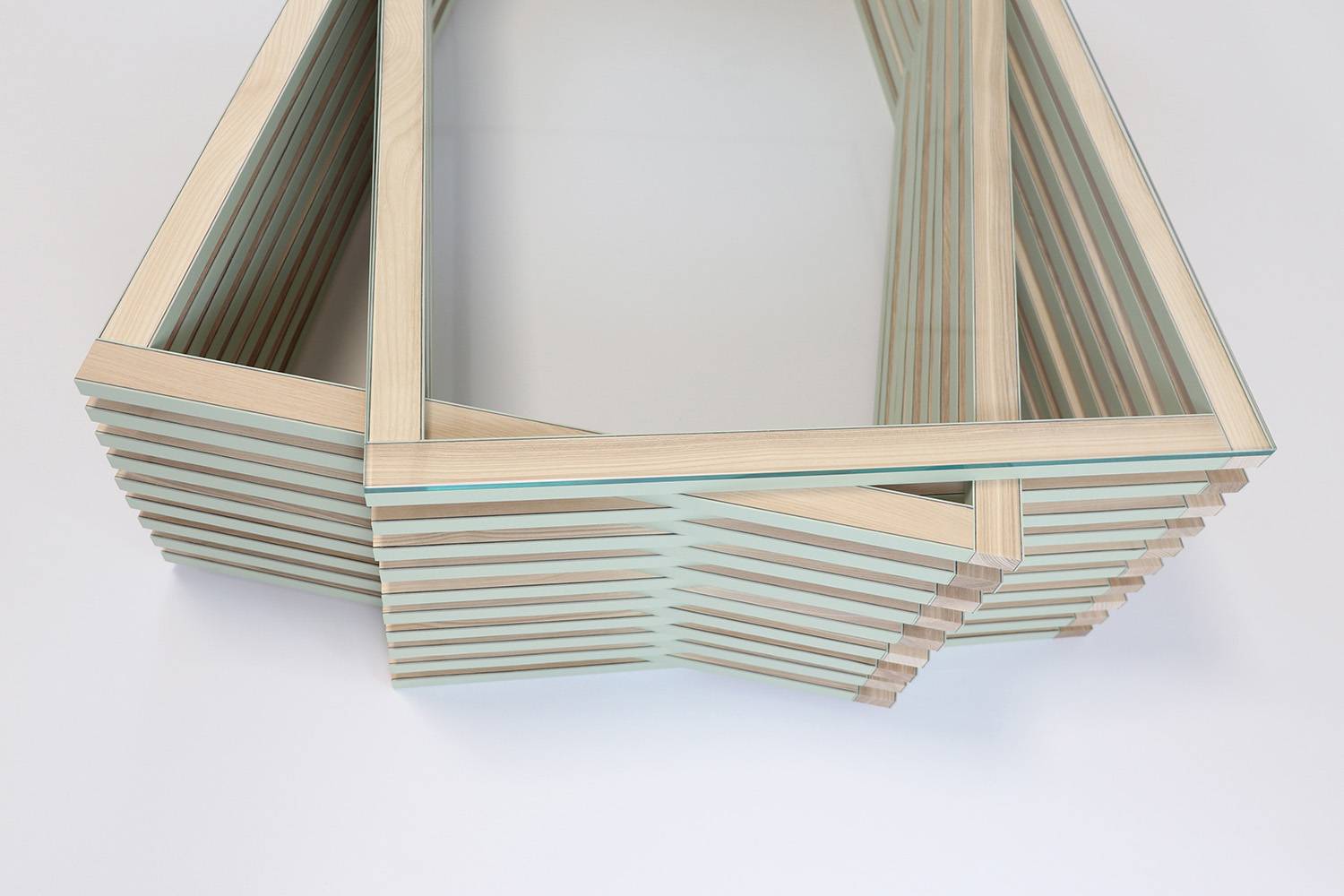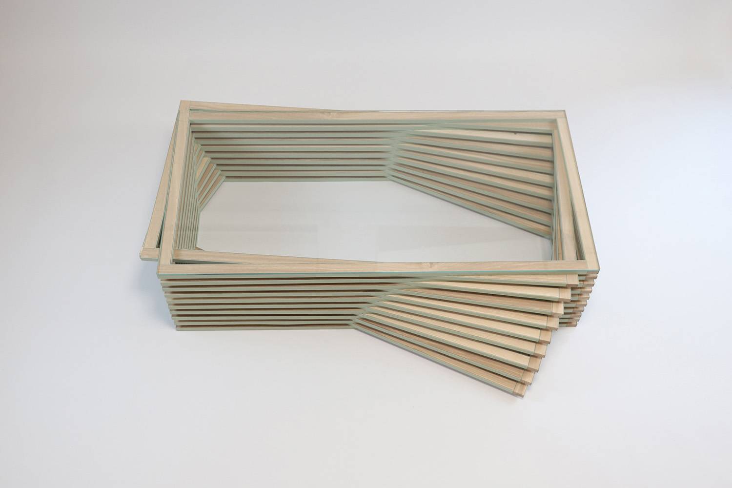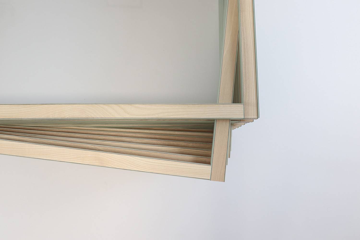 the simpler the product, the more difficult it is to develop. fortunately, we made it. now we can enjoy the 20 frames that can be stacked freely on top of each other and the resulting patterns. the filigree but sturdily doweled frames allow for thousands of forms and even show their curves now and then. admittedly, the arrangement tempts to pedantry. yes, you can also just arrange the frames wildly, but where will that lead?