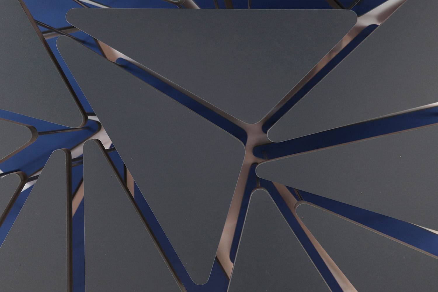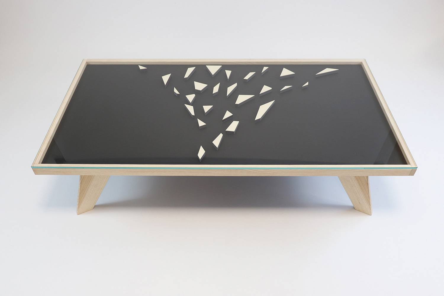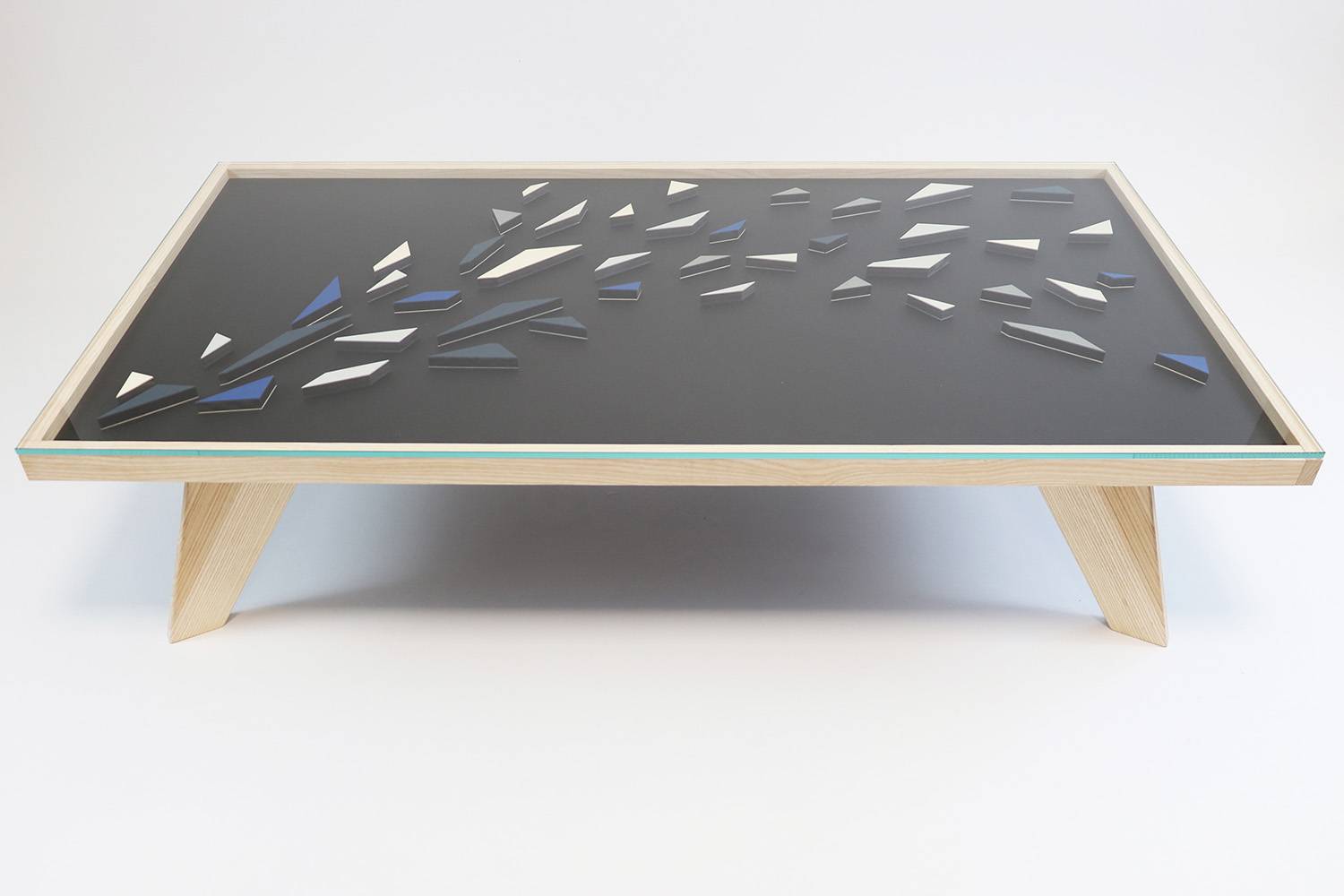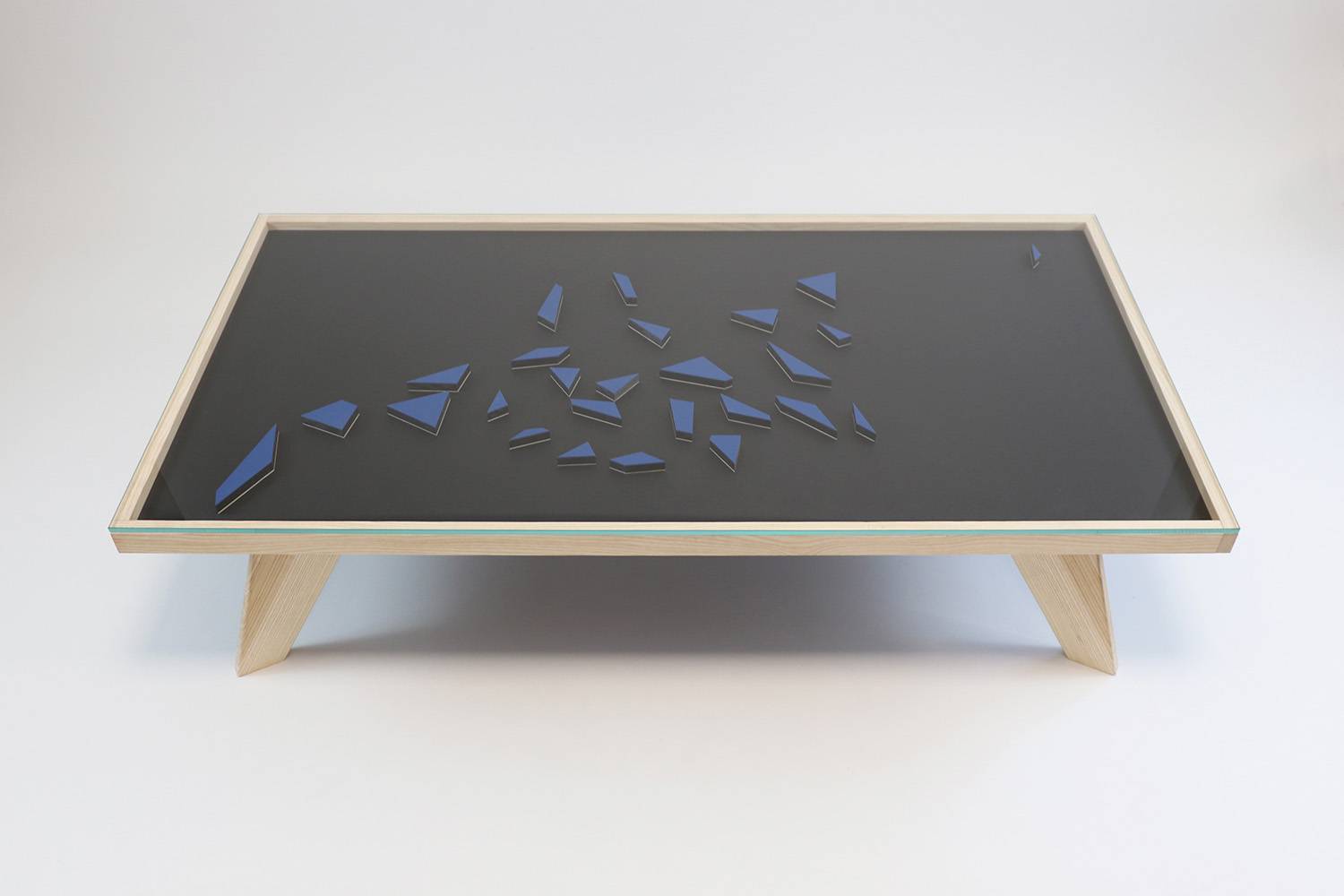 why should you have to choose between a table and a work of art? the flow coffee table cleverly combines both and challenges your creativity in the process. 77 individual triangles and squares can be arranged in a thousand forms. whether dynamic, as a mosaic, minimalist or playful: it will be fun. and the best thing is: the six color shades harmonize outstandingly